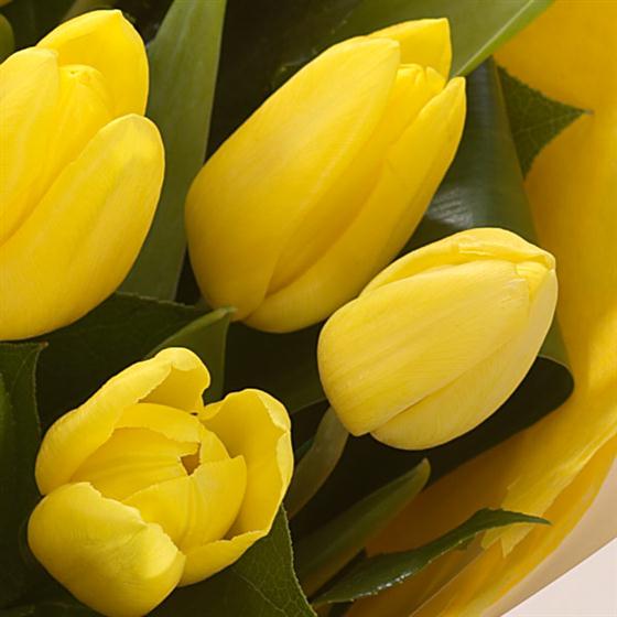 Strikingly simple bright yellow Tulips in a cream gift bag. This dazzling hand-tied will bring a smile to the face of someone special.
