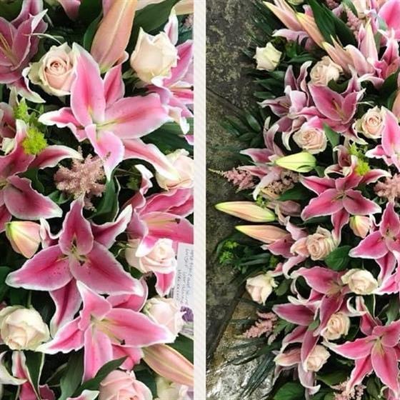 Pink Lily and Pink Rose Coffin Spray